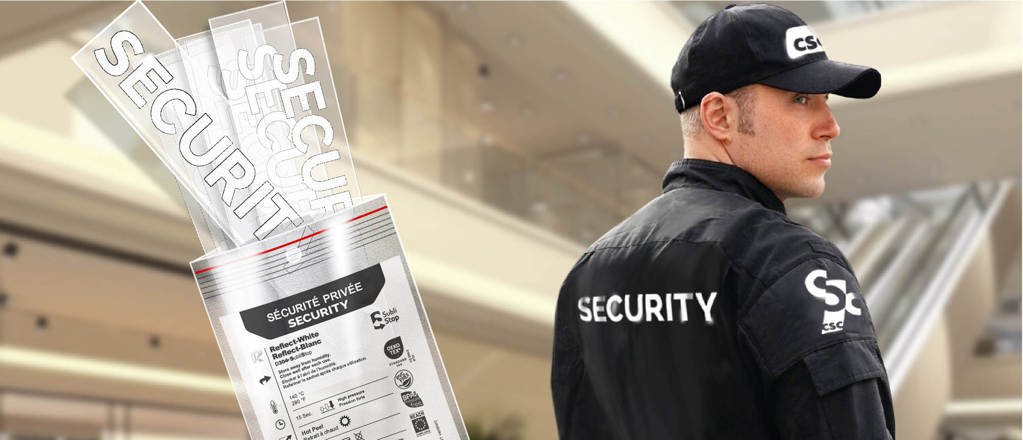 Listos para planchar y ya descartados, estos marcajes son fáciles de estampar en una gran variedad de textiles, incluidos los softshell y los tejidos de poliéster sublimados. Son muy legibles, tanto de día como de noche, por lo tanto este producto ofrece una solución rápida, fiable y con alta visibilidad para identificar a los agentes de seguridad privada.